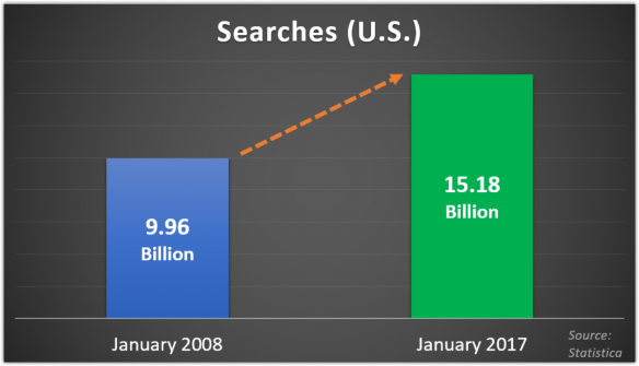 People search online for products and services way more today than they did in 2008. Google gets trillions of searches per year now.