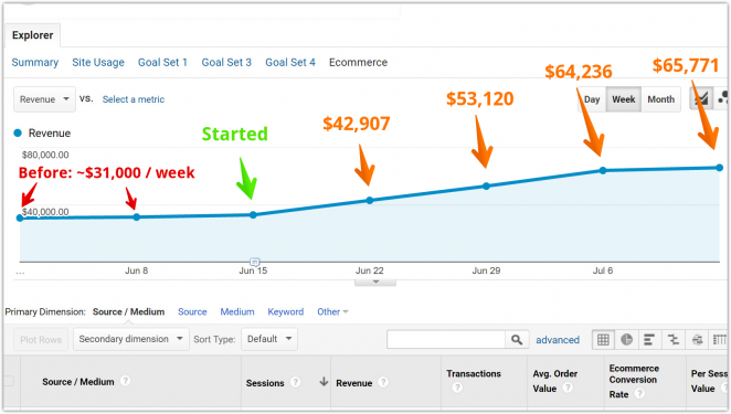 By implementing some basic AdWords and SEO techniques for this client, we were able to increase their sales by $34,771 per week.